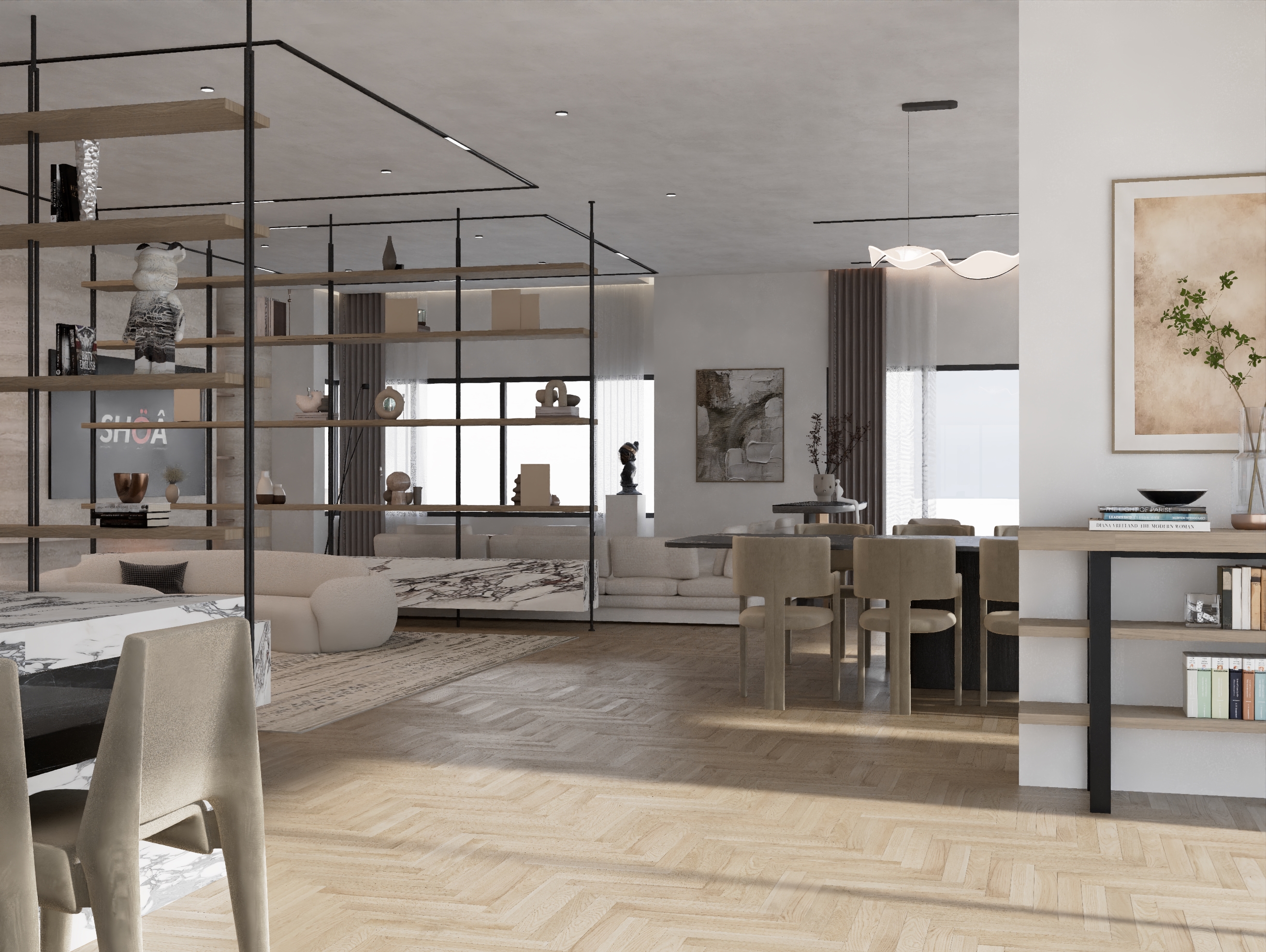 Execution quality is central to the project. Bespoke joinery, precision detailing and seamless coordination of services ensure that every element is integrated cleanly and intentionally. Shoa’s approach ensures that design intent is carried through rigorously from concept to completion.