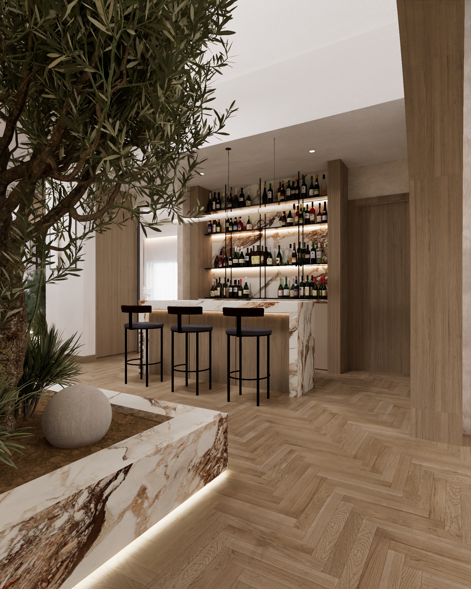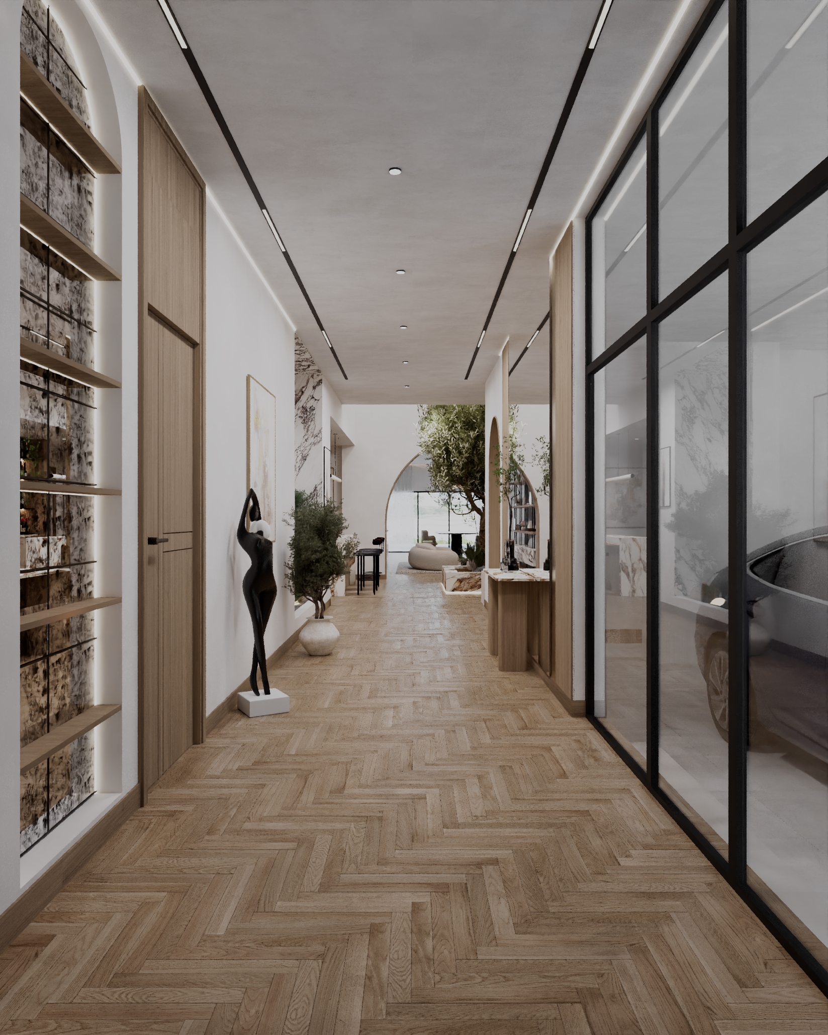 • Integrated indoor greenery and planted courtyards enhancing spatial calm and connection to nature