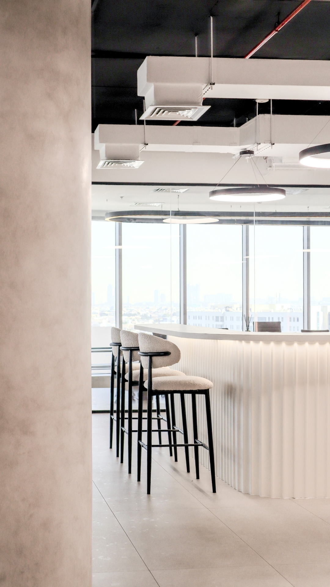 Located in the vibrant heart of Barsha Heights, this office fit-out and renovation embraces a clean industrial aesthetic softened by natural textures and curved architectural features. The space balances sophistication with functionality open workstations with high-spec ergonomic seating are paired with lush greenery, acoustic-friendly materials, and seamless lighting integration. A refined palette of soft neutrals and black contrasts enhances spatial definition, while key areas like the reception and coffee bar evoke both hospitality and high-end professionalism. Glass-partitioned meeting rooms, black marble accents, and subtle archways reflect the project’s vision for a future-forward yet human-centered workplace in one of Dubai’s fastest-growing business districts.